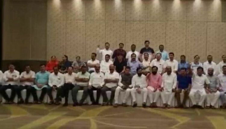 #WATCH | Assam: In a fresh video from Radisson Blu Hotel in Guwahati, rebel Maharashtra MLAs – including Eknath Shinde – sit together and raise slogans of “Shinde sa’ab tum aage badho, hum tumhare saath hain.”#MaharashtraPoliticalCrisis pic.twitter.com/NwBMpNeuG8