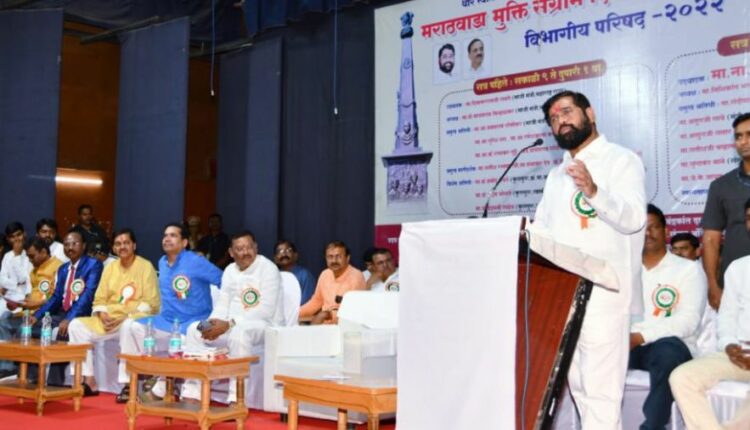 मराठवाडा मुक्तिसंग्राम दिनानिमित्त थोर स्वातंत्र्यता सेनानी श्री स्वामी रामानंद तीर्थ स्मारक व सेवाभावी संस्था परभणी, मराठवाडा मुक्ती संग्राम दिन अमृत महोत्सव समितीकडून शहरातील तापडिया नाट्य मंदिरात आयोजित करण्यात आलेल्या विभागीय परिषदेत मुख्यमंत्री श्री. शिंदे बोलत होते. यावेळी सर्वश्री आमदार अभिमन्यू पवार, संजय शिरसाट, प्रदीप जैस्वाल यांच्यासह निशिकांत भालेराव, सुभाष जावळे, रामेश्वर शिंदे, अरूण मराठे आदींची प्रमुख उपस्थिती होती.