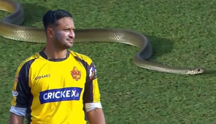 श्रीलंकेच्या डोमेस्टिक क्रिकेट लीग – LPL 2023 च्या दुसर्या सामन्यात, दांबुला ओरा संघ 181 धावांचे लक्ष्य पाठलाग करत होता. त्यानंतर डावाच्या चौथ्या षटकात मैदानावर साप आला. गॅले टायटन्सचा शाकिब अल हसन आपले पहिले षटक सुरू करणार होता तेव्हा त्याला सीमारेषेजवळ साप रेंगाळताना दिसला आणि त्यानंतर त्याने सामना अधिकाऱ्यांना माहिती दिली.