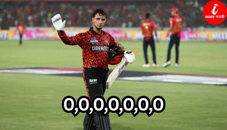 अभिषेक शर्मासाठी हे वर्ष ‘झिरो’चे वर्ष ठरत आहे. राजस्थानविरुद्धच्या सामन्यासहित या एकाच वर्षात तो तब्बल ७ वेळा शून्यावर बाद झाला आहे. यामध्ये न्यूझीलंडविरुद्ध २ वेळा, टी-२० वर्ल्ड कपमध्ये ३ वेळा आणि आयपीएलमध्ये लखनऊ सुपर जायंट्स आणि आता राजस्थान रॉयल्सविरुद्ध प्रत्येकी १ वेळा तो खाते न उघडता बाद झाला आहे. विशेष म्हणजे, या ७ पैकी ४ वेळा तो पहिल्याच चेंडूवर (गोल्डन डक) बाद झाला असून त्याच्या एकूण टी-२० कारकिर्दीत तो आतापर्यंत १६ वेळा शून्यावर बाद झाला आहे.