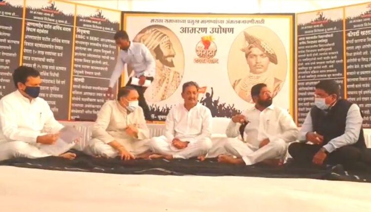 मुंबईमधील आझाद मैदानावर संभाजीराजे उपोषणाला बसले होते. आज शिवसेना नेते आणि कॅबिनेट मंत्री एकनाथ शिंदे आणि गृहमंत्री दिलीप वळसे पाटील यांनी संभाजीराजेंची भेट घेतली आहे. त्यांच्या सर्व मागण्यांवर मुख्यमंत्री उद्धव ठाकरे यांच्यासोबत चर्चा केली. त्यानंतर आज आझाद मैदानात ज्या ज्या मागण्या मान्य केल्यात त्याची माहिती दिली संभाजीराजे यांना देण्यात आली. आणि संभाजीराजेंना उपोषण सोडण्यास विनंती केली. त्यानंतर संभाजीराजेंनी उपोषण सोडण्याचा निर्णय घेतला.