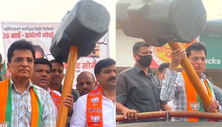 दापोलीकडे निघण्यापूर्वी सोमय्या यांनी एक प्रतिकात्मक मोठा हातोडा प्रसारमाध्यांसमोर दाखवला आहे. हा हातोडा जनतेच्या भावनेचे प्रतिक असल्याचं कीरीट सोमय्या यांनी म्हटले आहे. जनता असाच हातोडा घेणार आणि यांना बाहेरचा रस्ता दाखवणार. साडेबारा कोटी जनतेचा हा हातोडा असल्याचं किरीट सोमय्या म्हणाले आहेत.