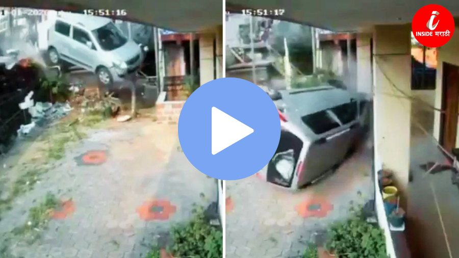 कर्नाटकातील मंगळुरूमध्ये एका भीषण अपघाताने सर्वांच्या काळजाचा ठोका चुकवला आहे. भरधाव वेगात असलेल्या कारचे टायर अचानक फुटल्याने चालकाचे नियंत्रण सुटले आणि कार चक्क हवेत उडत जाऊन रस्त्याशेजारील एका घराच्या अंगणात कोसळली. या थरारक अपघाताचे सीसीटीव्ही (CCTV) फुटेज सध्या सोशल मीडियावर तुफान व्हायरल होत असून, ते पाहून नेटकऱ्यांच्या अंगावर शहारे येत आहेत.
