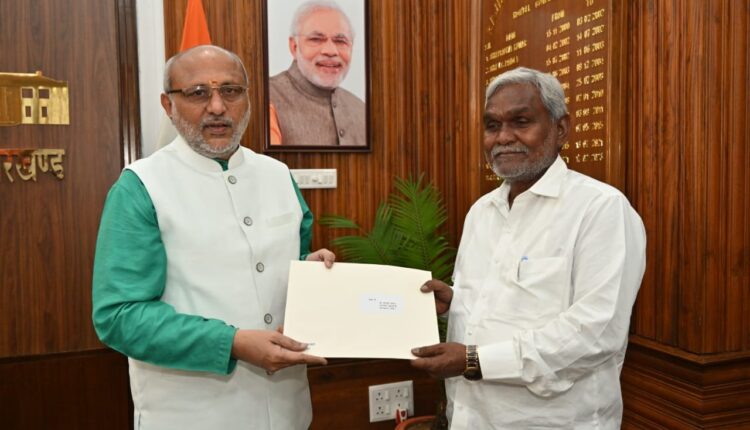 Jharkhand CM Champai Soren tenders resignation to Governor CP Radhakrishnan at Raj Bhavan in Ranchi.