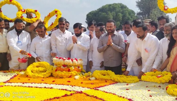 सातारा: राज्याचे पहिले मुख्यमंत्री स्वर्गीय यशवंतराव चव्हाण यांच्या पुण्यतिथीनिमित्त मुख्यमंत्री एकनाथ शिंदे यांनी प्रीतिसंगम, कराड येथील समाधीस्थळावर पुष्पचक्र अर्पण करून अभिवादन केले.