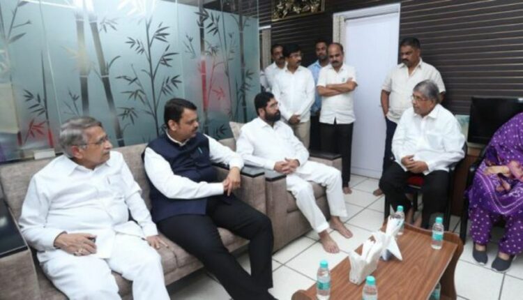 कोल्हापूर : माजी मंत्री आमदार चंद्रकांत पाटील यांच्या मातोश्रींचे काल निधन झाल्याने मुख्यमंत्री एकनाथ शिंदे व उपमुख्यमंत्री देवेंद्र फडणवीस यांनी आमदार चंद्रकांत पाटील यांच्या संभाजीनगर येथील निवासस्थानी भेट देऊन त्यांचे व कुटुंबियांचे सांत्वन केले.