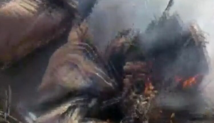 #WATCH | Rajasthan, Bharatpur | Wreckage of jet seen. Earlier report as confirmed by Bharatpur District Collector Alok Ranjan said charter jet, however, defence sources confirm IAF jets have crashed in the vicinity. Therefore, more details awaited. pic.twitter.com/005oPmUp6Z