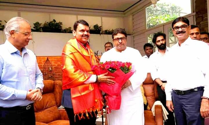 यावेळी राज ठाकरे यांनी देवेंद्र फडणवीस यांचा सत्कार केला आणि शुभेच्छा दिल्या. याप्रसंगी पक्षाचे नेते श्री. अमित ठाकरे, बाळा नांदगावकर, नितीन सरदेसाई, सरचिटणीस संदीप देशपांडे उपस्थित होते. यावेळी देवेंद्र फडणवीस यांनी मुंबई राजसाहेब ठाकरेंच्या प्रकृतीची विचारपूस केली आणि त्यांना लवकर बरे होण्यासाठी शुभेच्छा दिल्या.