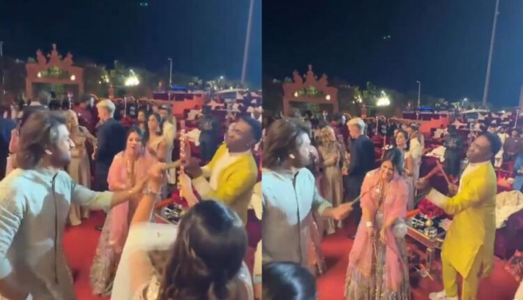 Dhoni, Sakshi, Bravo playing Dandiya at the Pre-Wedding of Anant Ambani. 👌