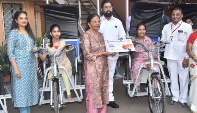 मुंबई: दिव्यांग बांधवांसाठी उपयुक्त अशा विविध साधनांचे व उपकरण संचांचे मुख्यमंत्री एकनाथ शिंदे यांच्या हस्ते आज वर्षा शासकीय निवासस्थानी दिव्यांग लाभार्थ्यांना वितरण करण्यात आले. मुख्यमंत्री जनकल्याण कक्षातर्फे या उपक्रमाचे आयोजन करण्यात आले. यात २६ दिव्यांग लाभार्थ्यांना बॅटरी संचलित तीनचाकी सायकल, वैद्यकीय उपकरणांचा संच (कम्युनिटी मेडिकल किट) अशा साहित्याचे वितरण करण्यात आले.