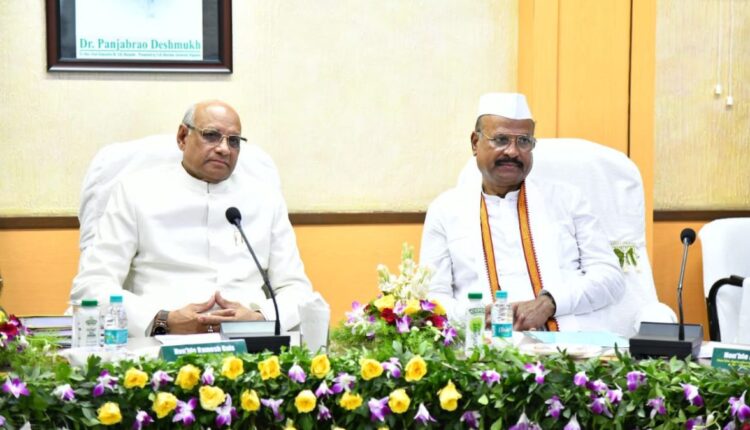 केंद्र शासनाच्या योजना, सामाजिक उत्तरदायित्व निधीतून राबविलेल्या योजना, संशोधन प्रकल्प आदी विविध बाबींचा आढावा त्यांनी घेतला. यावेळी राष्ट्रसंत तुकडोजी महाराज विद्यापीठाचे कुलगुरू डॉ. सुभाष चौधरी, कविकुलगुरु कालिदास संस्कृत विद्यापीठाचे कुलगुरू मधुसूदन पेन्ना, पशु व मत्स्य विज्ञान विद्यापीठाचे कुलगुरु डॉ. एस. आर. गडाख, गोंडवना विद्यापीठाचे कुलगुरू डॉ. प्रशांत सोकारे, संत गाडगेबाबा अमरावती विद्यापीठाचे कुलगुरू डॉ. प्रमोद येवले, स्वामी रामानंद तीर्थ मराठवाडा विद्यापीठाचे कुलगुरू डॉ. उदय भोसले, डॉ. पंजाबराव देशमुख कृषी विद्यापीठाचे कुलगुरू डॉ. शरद गडाख, कवयित्री बहिणाबाई चौधरी उत्तर महाराष्ट्र विद्यापीठाचे कुलगुरू विजय माहेश्वरी, वसंतराव नाईक मराठवाडा कृषी विद्यापीठाचे कुलगुरू डॉ. इंद्रमणी, जिल्हाधिकारी निमा अरोरा आदी उपस्थित होते.