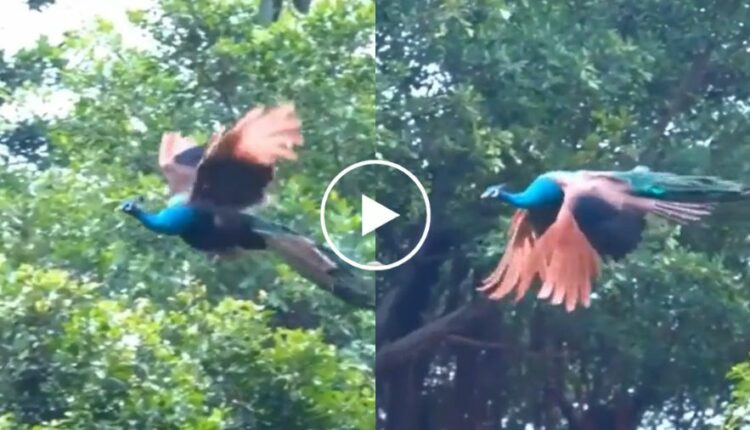 Flying Peacock Viral Video: तुम्ही सोशल मीडियावर मोराचे अनेक व्हिडिओ पाहिले असतील, अर्थातच, पंख पसरून नाचणाऱ्या मोराचे दृश्य खूपच मनमोहक असते, पण तुम्ही कधी मोर उडताना पाहिला आहे का?) होय, नाचणारा मोर सहज दिसू शकतो, परंतु उडणारा मोर दिसणे अत्यंत दुर्मिळ मानले जाते. अशा परिस्थितीत सोशल मीडियावर सध्या एका मोराचा एक व्हिडिओ दहशत निर्माण करत आहे, ज्यामध्ये मोर उडताना दिसत आहे.