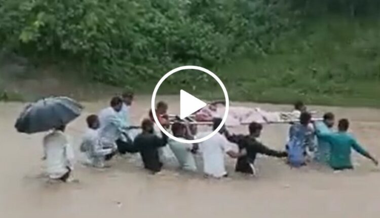 पुराच्या पाण्यातून खांद्यावर तिरडी घेऊन मृतदेहावर स्मशनात अंत्यसंस्कार.#yavatmal pic.twitter.com/4s7L1SfOjU