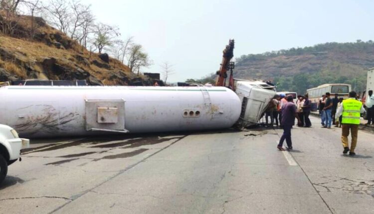 सुदैवाने टँकरमधील गॅसची गळती झाली नाही. सध्या टँकर उभा करण्याचा प्रयत्न सुरू आहे. खबरदारी म्हणून खोपोली अग्निशमन विभागाचे पथक घटनास्थळी पाण्याचा मारा करण्यासाठी सज्ज आहे.