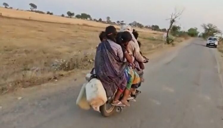 एक बाइक में मासूम सहित 7 लोग सवार होकर कर रहे यात्रा#viralvideo pic.twitter.com/tvct2hSymX