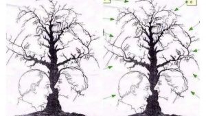 हे चित्र प्रथमदर्शनी पाहिल्यावर तुम्हाला असे वाटेल की या चित्रात एकच झाड दिसत आहे. पण जेव्हा तुम्ही चित्र नीट पाहाल तेव्हा या चित्रात अनेक चेहरे दडलेले आहेत.