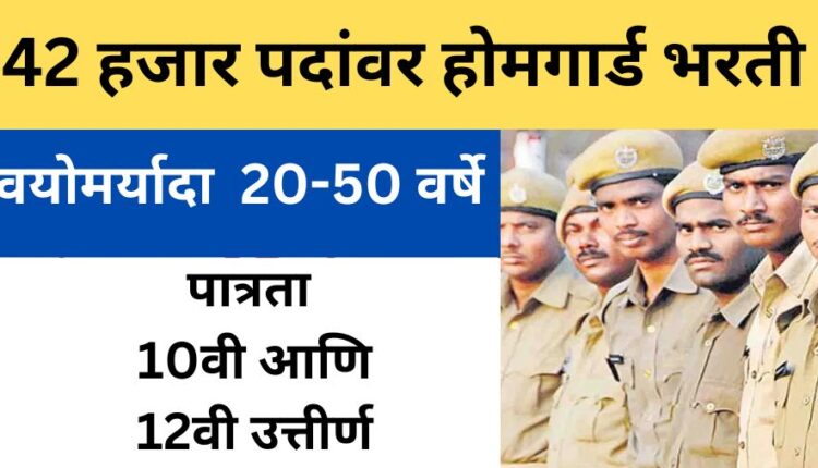42 हजार पदांवर होमगार्ड भरतीची अधिसूचना जारी करण्यात येणार आहे. पोलिसांच्या धर्तीवर होमगार्ड भरती होणार असून, होमगार्ड नियुक्तीमध्ये कोणतीही अनियमितता होऊ नये, असे आदेश मुख्यमंत्र्यांनी दिले आहेत UP मध्ये होमगार्ड नियुक्तीसाठी लिखित परीक्षा घेतली जाईल आणि उमेदवाराची वयोमर्यादा जास्तीत जास्त 50 वर्षे. 10वी आणि 12वी उत्तीर्ण असेल. जास्तीत जास्त 50 वर्षे.