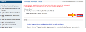 - ऑनलाइन पेमेंटसाठी पर्यायावर टिक करा, पहिल्या पर्यायावर टिक करा आणि पुढील पर्यायावर क्लिक करा.