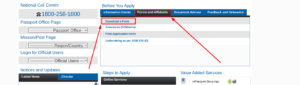 - पासपोर्ट सेवेच्या अधिकृत वेबसाइटला भेट दिल्यानंतर, तुम्हाला वेबसाइटच्या होम पेजवर फॉर्म आणि अॅफिडेविट्सचा पर्याय दिसेल. पर्यायावर क्लिक करा.