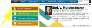 वेबसाइटला भेट दिल्यानंतर तुमच्या कॉम्प्युटर स्क्रीनवर होम पेज ओपन होईल, होम पेजमध्ये तुम्हाला New user registration चा पर्याय दिसेल. पर्यायांवर क्लिक करा. - नोंदणी करण्यासाठी, अर्जदाराने प्रथम पासपोर्ट ऑनलाइन सेवा www.passportindia.gov.in च्या अधिकृत वेबसाइटला भेट दिली पाहिजे.