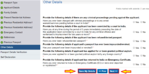 यानंतर तुमच्यासमोर इतर तपशीलांचा फॉर्म उघडेल, तुम्हाला या फॉर्ममध्ये विचारलेल्या प्रश्नांची उत्तरे होय किंवा नाही द्यावी लागतील, तुमची पोलिस क्रिमिनलमध्ये कोणतीही नोंद नसेल तर तुम्हाला सर्व उत्तरे ‘नाही’ मध्ये द्यावी लागतील. आणि save my detailsवर क्लिक करून पुढील पर्याय निवडा.