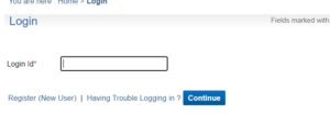 ऑप्शनवर क्लिक केल्यानंतर तुमच्या स्क्रीनवर एक नवीन पेज उघडेल, नवीन पेजमध्ये तुम्हाला लॉगिन आयडी टाकावा लागेल, तुम्हाला तोच लॉ - गिन आयडी वापरावा लागेल जो तुमच्या नोंदणीच्या वेळी टाकला होता. आता तुम्हाला continue या पर्यायावर क्लिक करावे लागेल.
