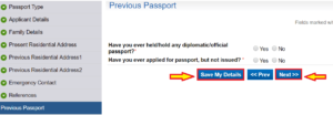 - आणि दुसर्या पर्यायात तुम्हाला yes वर क्लिक करावे लागेल. जर तुम्ही यापूर्वी पासपोर्टसाठी अर्ज केला असेल आणि तुम्हाला पासपोर्ट मिळाला नसेल