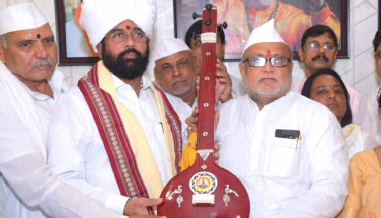 #पंढरपूर च्या श्री विठ्ठल रुक्मिणी मंदिर समितीने मुख्यमंत्री @mieknathshinde यांना #आषाढीएकादशी च्या श्री विठ्ठलाच्या महापूजेचे निमंत्रण दिले. मंदिर समितीचे सह-अध्यक्ष गहिनीनाथ महाराज औसेकर यांनी मुख्यमंत्र्यांना वारकरी फेटा, उपरणे, वीणा आणि पांडुरंगाची प्रतिमा देऊन सत्कार केला. pic.twitter.com/CXWbjALlBT