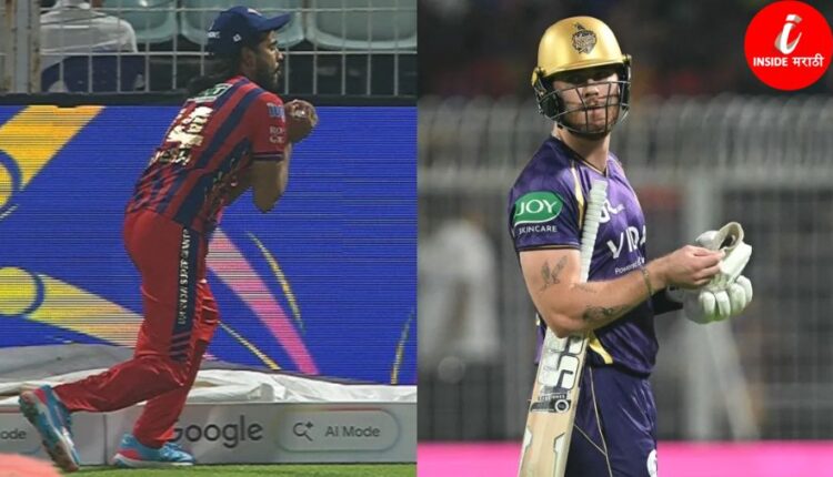 केकेआरच्या डावातील दुसऱ्या षटकात लखनऊचा गोलंदाज प्रिन्स यादव याच्या चेंडूवर फिन ॲलनने मोठा शॉट खेळण्याचा प्रयत्न केला. चेंडू बॅटची कडा घेऊन थर्ड मॅनच्या दिशेने हवेत उडाला. तिथे फिल्डिंग करत असलेल्या दिग्वेश सिंह राठीने धावत जाऊन शानदार झेल टिपला. मात्र, झेल घेताना दिग्वेशचा पाय बाउंड्री लाईनच्या अत्यंत जवळ होता. रिप्ले आणि काही कॅमेरा अँगलवरून दिग्वेशचा पाय बाउंड्री लाईनला स्पर्श करत असल्याचा संशय येत होता. विशेष म्हणजे, झेल पकडल्यानंतर बाउंड्रीवरील जाहिरातीचा पडदाही थोडा हलल्याचे दिसून आले, जे पाय टेकल्याचे संकेत असू शकतात.