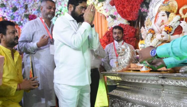 पुणे : मुख्यमंत्री एकनाथ शिंदे यांनी पुण्यातील मानाच्या गणपतींसह विविध गणेश मंडळांना भेट देऊन श्री गणेशाचे दर्शन घेतले. राज्यातील जनतेच्या आयुष्यात सुखसमृद्धी आणि समाधान लाभू दे, शेतकऱ्यांच्या जीवनात आनंद फुलू दे असे साकडे त्यांनी श्री गणरायाला घातले.