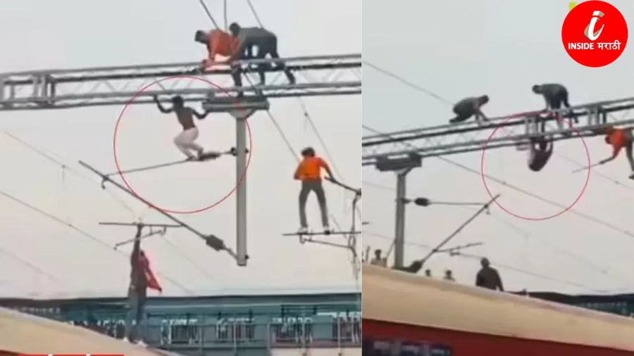 Viral Video: रेल्वे स्थानक बनलं ‘WWE’चं रिंगण, विजेच्या तारांवर चढून तरुणाचा थरार; रेल्वे प्रशासनाची उडाली मोठी धांदल