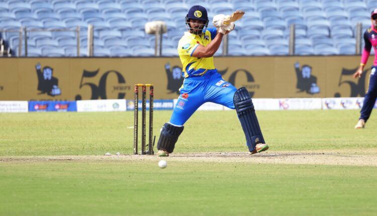महाराष्ट्र क्रिकेट संघटनेच्या गहूंजे येथील स्टेडियमवर सुरू असलेल्या या स्पर्धेत पहिल्या सामन्यात सोलापूर रॉयल्स संघाने नाणेफेक जिंकून प्रथम गोलंदाजी करण्याचा निर्णय घेतला व तो त्यांच्या गोलंदाजांनी यशस्वी ठरविला. सलामीचा फलदांज हर्षद खडीवाले(०धावा)ला विकी ओस्तवालने आपल्या गोलंदाजीवर दुसऱ्याच चेंडूवर झेल बाद केले. तर, मागच्या सामन्यात अर्धशतकी खेळी करणाऱ्या अर्शिन कुलकर्णी(१८धावा)ला आज मोठी खेळी करता आली नाही. त्याला जलदगती गोलंदाज प्रणव सिंगने पायचीत बाद करून गोलंदाजीत चांगली साथ दिली.