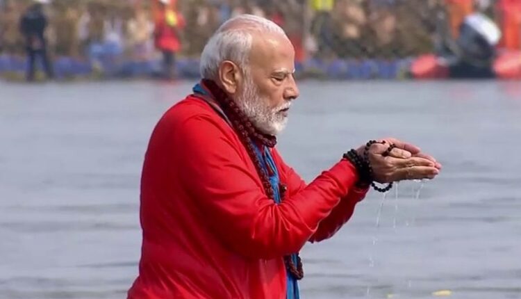 पंतप्रधान नरेंद्र मोदी प्रयागराजला पोहोचले आणि संगमात स्नान केले. पंतप्रधान मोदी, मुख्यमंत्री योगी यांच्यासोबत बोटीने संगमला पोहोचले आणि नंतर त्यांनी संगमात डुबकी मारली. यावेळी पंतप्रधानांनी भगवे रंगाचे कपडे घातले होते आणि त्यांच्या गळ्यात रुद्राक्षाची माळ होती. मंत्र पठण करताना, पंतप्रधान मोदींनी संगमात एकटेच डुबकी मारली. स्नान केल्यानंतर पंतप्रधानांनी मंत्रांचा जपही केला.