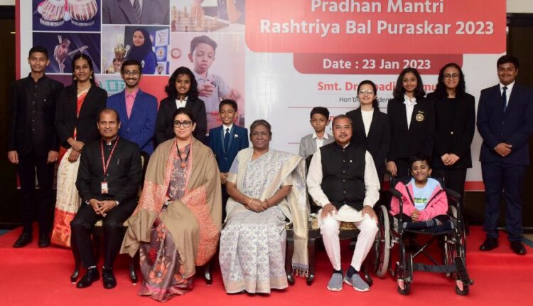 President Droupadi Murmu conferred the Pradhan Mantri Rashtriya Bal Puraskar, 2023 on 11 children at an award ceremony held in New Delhi today. https://t.co/IPChpTYF3H pic.twitter.com/eBXjWLgdE3