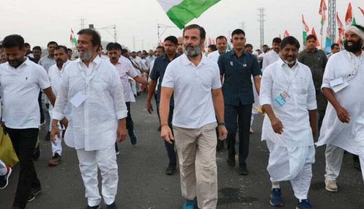 राहुल गांधी यांच्या नेतृत्वाखाली काँग्रेसची ‘भारत जोडो यात्रा’ शेजारच्या तेलंगणा राज्यातून 7 नोव्हेंबर रोजी रात्री 9 वाजता महाराष्ट्रातील नांदेड जिल्ह्यात दाखल होईल. कॉंग्रेस पक्षाकडून रविवारी ही माहिती देण्यात आली आहे. जनतेशी जोडण्याच्या काँग्रेसच्या प्रयत्नांचा एक भाग म्हणून काढण्यात आलेली ही यात्रा महाराष्ट्रात 14 दिवस चालणार असून 15 विधानसभा आणि सहा लोकसभा मतदारसंघातून ती जाणार आहे. त्याचवेळी राहुल गांधी 10 आणि 18 नोव्हेंबर रोजी राज्यात दोन सभांना संबोधित करणार आहेत. तेलंगणातील कामारेड्डी येथून ही यात्रा रात्री नऊच्या सुमारास महाराष्ट्रातील नांदेड जिल्ह्यातील देगलूरमध्ये दाखल होईल.