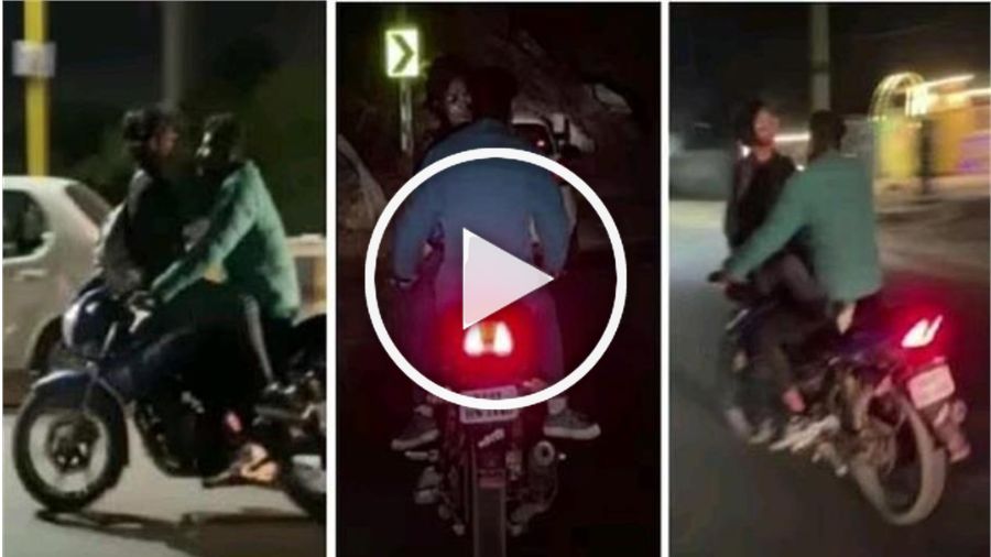 आजकाल तरुणाईवर प्रेमाची ओढ इतकी वाढली आहे की ते आपली प्रतिष्ठा विसरत आहेत. रस्त्याच्या मधोमध खुलेपणाने प्रेम करणे, कदाचित तरुणाई याला आपला अभिमान मानत असेल किंवा प्रेम हा केवळ दिखावा झाला आहे. लखनौ आणि छत्तीसगडमध्ये बाइकवर रोमान्स करतानाचा व्हिडिओ समोर आल्यानंतर आता राजस्थानमधूनही असाच एक प्रकार समोर आला आहे. राजस्थानच्या अजमेरमध्ये सोमवारी रात्री उशिरा एक प्रेमी युगल रीजनल कॉलेज क्रॉसरोडपासून नौसर व्हॅलीपर्यंत चालत्या बाईकवर रोमान्स करताना दिसले.