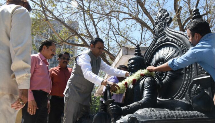 मुंबई : छत्रपती शिवाजी महाराज यांच्या जयंतीनिमित्त आज विधान भवनातील त्यांच्या सिंहासनाधिष्ठीत पुतळ्यास महाराष्ट्र विधानसभेचे अध्यक्ष ॲड. राहुल नार्वेकर यांनी पुष्पहार अर्पण करुन अभिवादन केले. सकाळपासूनच विधान भवनाचा परिसर तुतारी-सनई-चौघड्याच्या निनादाने दुमदुमून गेला होता. पारंपरिक वेषातील तुतारीवादक हे या शिवजयंती सोहळयाचे वैशिष्टय ठरले.