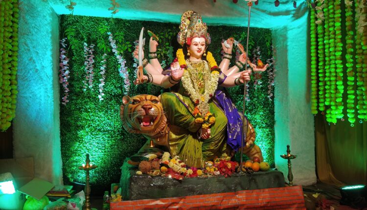 देवी दुर्गा आणि महिषासुराच्या कथेचा उल्लेख हिंदू धार्मिक ग्रंथांमध्ये आढळतो. या कथेतून सत्ता आणि अधर्मावर धर्माच्या विजयाचा संदेश मिळतो. या आख्यायिकेनुसार, महिषासुर नावाच्या शक्तिशाली राक्षसाने आपल्या शक्तीचा चुकीचा वापर करत स्वर्ग आणि पृथ्वीवर अत्याचार करण्यास सुरुवात केली. महिषासुराने तपश्चर्या करत भगवान ब्रह्मदेवाकडून आशीर्वाद प्राप्त केला होता की, कोणीही देव, राक्षस किंवा मानव आपल्याला मारू शकत नाही. त्यानंतर देवतांनी ब्रह्मा, विष्णू आणि शिव यांना महिषासुराच्या अत्याचारांपासून मुक्तीसाठी प्रार्थना केली. यानंतर तिन्ही देवतांनी आपापल्या शक्ती एकत्र करून देवी दुर्गा प्रकट केली. यासोबतच त्यांनी आपली सर्वोत्तम शस्त्रे माता दुर्गाला दिली.