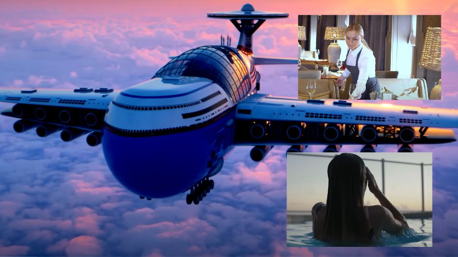 आर्टिफिशियल इंडिलिजेंस असलेल्या या काल्पनिक हॉटेलमध्ये 20 इंजिन असणार आहेत. एकदा आकाशात उड्डाण केल्यानंतर या विमानाला जमिनीवर उतरण्याचीही गरज भासणार नाही, कारण हे अनेक महिने हवेत उडत राहिल. यामधून सुमारे पाच हजार जणांना हवाई सफर करता येईल.