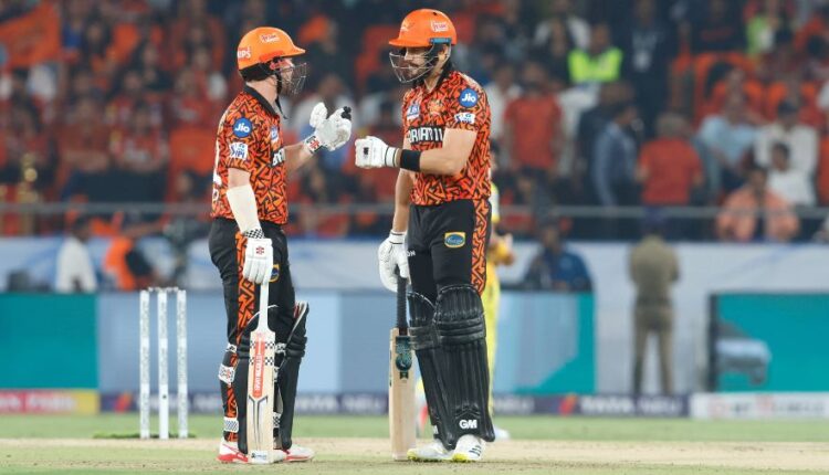 166 धावांच्या लक्ष्याचा पाठलाग करताना सनरायझर्स हैदराबादची सुरुवात चांगली झाली. सलामीवीर ट्रॅव्हिस हेड आणि अभिषेक शर्मा यांच्यात पहिल्या विकेटसाठी 17 चेंडूत 46 धावांची भागीदारी झाली. ही भागीदारी दीपक चहरने तोडली. तिसऱ्या षटकाच्या चौथ्या चेंडूवर चहरने अभिषेक शर्माला रवींद्र जडेजाकडून झेलबाद केले. अभिषेकने 12 चेंडूत 37 धावा केल्या. या खेळीत त्याने 3 चौकार आणि 4 षटकार मारले.