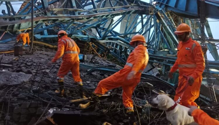 #UPDATE | Maharashtra: Two NDRF teams are working at the site after a crane fell on the slab of a bridge in Shahapur tehsil of Thane district. Till now 14 dead bodies have been retrieved and 3 have been injured. Another six are feared to be trapped inside the collapsed… https://t.co/3QiIuUwoIP pic.twitter.com/tptIFDfAfb