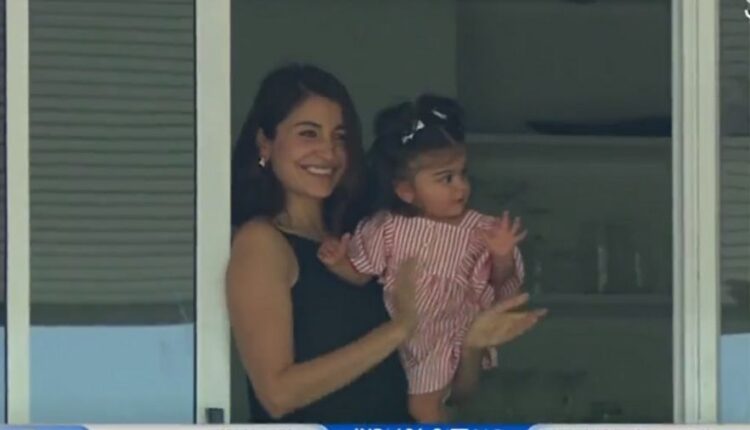 विराट कोहलीची पत्नी आणि बॉलिवूड अभिनेत्री अनुष्का शर्मा तिची मुलगी वामिकासह स्टँडवर उभी होती तेव्हा कॅमेरा तिच्याकडे वळला. गुलाबी रंगाचा ड्रेस परिधान करून वामिका तिची आई अनुष्काच्या मांडीवर होती. विराट कोहलीची मुलगी वामिकाची झलक पहिल्यांदाच दिसली आहे.