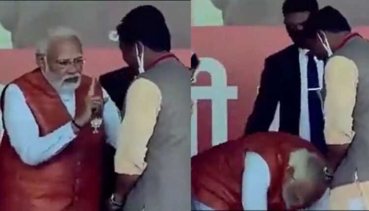 अवधेश कटियार यांनी पंतप्रधानांना ही मूर्ती भेट दिल्यानंतर पीएम मोदींनी त्यांना थांबवलं आणि त्यांच्या पाया पडू लागले. सध्या सोशल मीडियावर हा व्हिडिओ चांगलाचं व्हायरल झाला आहे. यासाठी अनेकजण पंतप्रधानांवर कौतुकाचा वर्षाव करत आहेत. भाजप नेता अरुण यादव यांनीही हा व्हिडिओ ट्विटरवर शेअर करत लिहिले की ‘एका कार्यकर्त्याच्या पाया फक्त मोदीजीच पडू शकतात.