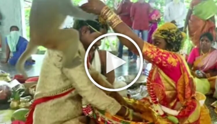सोशल मीडियावर व्हायरल होत असलेल्या व्हिडिओमध्ये वधू आणि वर एकमेकांसमोर बसलेले दिसत आहेत दरम्यान एक माकड वराच्या डोक्यावर उडी मारून काही धान्य हिसकावून पळून जाते. हा व्हिडिओ पाहिल्यानंतर तुम्हाला नक्कीच आश्चर्याचा धक्का बसला असेल.