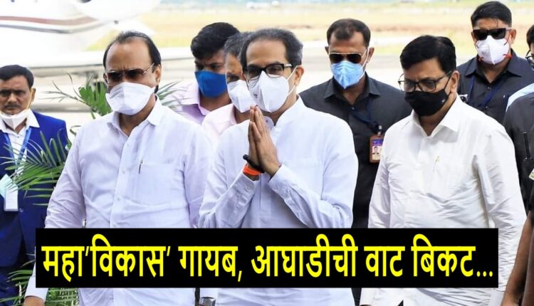 सत्तेवर आल्यापासूनच कोविड महामारी, निसर्ग, तौक्ते सारख्या नैसर्गिक आपत्तींचा सामना सरकारला करावा लागला. सत्तेतील भाजपचा हात सोडताच सेनेच्या आणि पर्यायानं महाविकास आघाडीच्या नेत्यांवर आयकर, ईडीचं संकट घोघांवू लागलं. पालघर हत्याकांड, कंगना-राज्य सरकार वाद, पत्रकार अर्णब गोस्वामी आणि राज्य सरकारमधील सामन्यामुळे सरकारची बरीच दमछाक झाली. या बोलघेवड्या पत्रकार, सेलिब्रेटी आणि नेत्यांमुळे विकासाचा मुद्दा मागेच राहिला. अँटिलिया स्फोटक प्रकरणातील बडतर्फ पोलीस अधिकारी सचिन वाझे, मनसुख हिरेनच्या खून प्रकरणानंतर महाविकास आघाडी सरकार बॅकफूटवर आले. १०० कोटी वसूली प्रकरणात मुंबईचे माजी पोलीस आयुक्त परमबीर सिंह यांच्या लेटरबॉम्बनंतर तत्कालिन गृहमंत्री अनिल देशमुखांना राजीनामा द्यावा लागल्यानंतर सरकारची मोठी नाचक्की झाली. जाहीरनाम्यातील कामांपेक्षा नेत्यांची लफडी आणि घोटाळ्यांमुळेचं हे सरकार जास्त चर्चेत राहिलं.