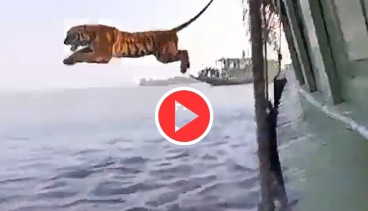 व्हिडीओमध्ये एक वाघ जंगलामध्ये सोडल्यानंतर बोटीतून उडी मारताना दिसत आहे. ही आश्चर्यकारक उडी अशी होती की जी आपण शब्दात वर्णन करू शकत नाही.