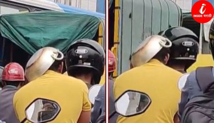 कढईचा ‘असा’ केला हेल्मेट म्हणून वापर