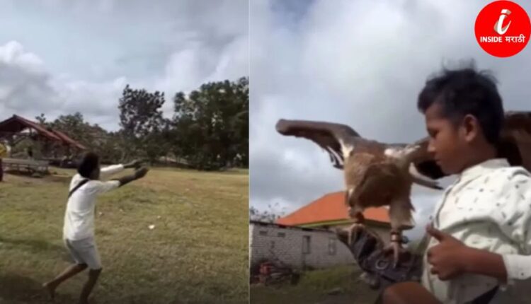 व्हायरल व्हिडिओमध्ये दिसते की, एक लहान मुलगा कोणत्याही भीतीशिवाय आकाशात उडणाऱ्या बाजाला प्रेमाने साद घालत आहे. सामान्यतः शिकारी पक्षी माणसांच्या जवळ जाणे टाळतात किंवा आक्रमक होतात. मात्र, येथे चित्र अगदी उलट आहे. त्या मुलाच्या आवाजातील ओढ आणि निरागसता समजल्यासारखा तो बाज हळूहळू खाली येतो. कोणत्याही भीतीशिवाय किंवा आक्रमकतेशिवाय तो पक्षी अत्यंत सहजतेने खाली उतरतो आणि त्या चिमुकल्याच्या हातावर स्थिरावतो.