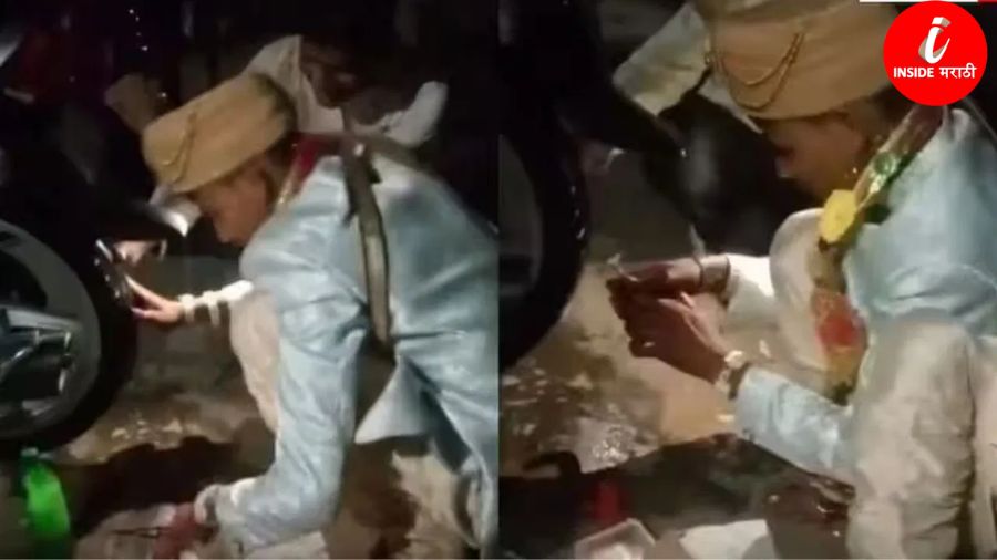 व्हायरल व्हिडिओमध्ये लग्नाचे वातावरण स्पष्टपणे दिसत आहे. नवरदेवाने देखणी शेरवानी घातली आहे, डोक्यावर साफा बांधला आहे आणि मागे वरातीचा मोठा आवाज येत आहे. मात्र, नवरदेव लग्नाच्या मांडवाकडे जाण्याऐवजी रस्त्याच्या कडेला चक्क एका गाडीचे पंचर काढताना दिसतोय. सुरुवातीला लोकांना वाटले की हा काहीतरी विनोद आहे, मात्र तो तरुण अतिशय गांभीर्याने आणि कौशल्याने आपले काम करताना पाहून उपस्थित सर्वच थक्क झाले.