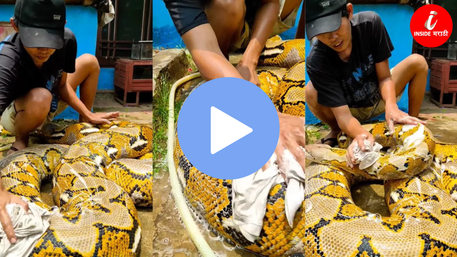 लोक साधारणपणे सापांजवळ जायलाही घाबरतात आणि काही जण इतके धोकादायक असतात की त्यांना पाहताच पळून जातात. तथापि, परदेशात असे बरेच लोक आहेत जे सापांना पाळीव प्राणी म्हणून ठेवतात आणि मुलांसारखे त्यांना आंघोळ घालतात. हो, हे अगदी खरे आहे. सध्या सोशल मीडियावर एक व्हिडिओ व्हायरल होत आहे, जो मनाला थरारक आहे. या व्हिडिओमध्ये एक माणूस एका महाकाय अजगराला घासताना आणि आंघोळ घालताना दिसत आहे. हे दृश्य इतके भयानक आहे की पहिल्या नजरेत तुमचाही विश्वास बसणार नाही.